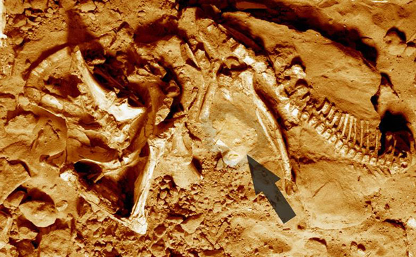 Niedzwiedzki and colleagues discovered an impression near the dinosaur’s pelvis. The shape and size correspond with what would be expected from the Protoceratops’ four-toed foot. This is the first time that scientists have observed fossilized Protoceratops tracks from this region and time period, in addition to being the rare tracks of a land animal preserved next to that animal. If you are interested in learning more about this find, the researchers published their study in the journal Cretaceous Research.